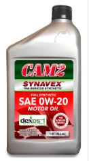 CAM2 Synavex™ dexos™1 Gen 3 Full Synthetic SAE 0W-20 Motor Oil is a premium, full synthetic engine oil formulated from selected superior base oils and advanced high performance engine oil additive technology. CAM2 Synavex™ dexos™1 Gen 3 Full Synthetic SAE 0W-20 Motor Oil is formulated with low friction additives to help improve fuel economy where SAE 0W-20 is recommended and to provide outstanding engine protection. CAM2 Synavex™ dexos™1 Gen 3 Full Synthetic SAE 0W-20 Motor Oil meets or exceeds the latest American Petroleum Institute (API) SP and car manufacturers ILSAC GF-6A service classification. CAM2 Synavex™ is the engine oil of choice for passenger cars, light trucks, powerboats, motorcycles and other stationary and mobile equipment when engine life and performance is important.