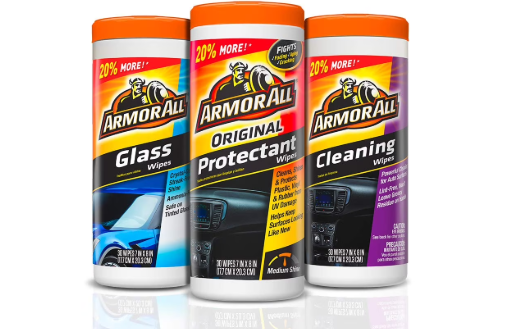 Maintain the beauty of your car's interior surfaces with Armor All quality auto products. Original Protectant Wipes fight fading, aging and cracking. Cleaning Wipes lift away dirt and debris and, when used as directed, are safe for delicate automotive surfaces. Glass Wipes easily removes filmy residue, road grime, bugs, fingerprints and more while delivering incredible clarity and shine. Convenient three-pack canisters feature a Moisture Lock Lid that keeps wipes Fresh and can be stored for use whenever you need them.