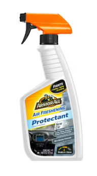 Armor All New Car Scent Air Freshening Car Protectant Spray - 16 FL OZ Keep your car interior looking and feeling like new with Armor All Air Freshening Car Protectant. In just one step, this air freshening formula cleans, protects and adds shine with trusted Armor All protection with New Car scent. Formulated to renew vinyl, rubber and plastic, Armor All protectant helps restore the appearance of surfaces while helping to prevent fading and cracking. This car cleaning spray leaves a beautiful shine, helping your car stay looking great. Apply this non-greasy auto spray to the dashboard, console, panels and vinyl seats to revitalize your auto interior. Other car care products may call themselves protectant, but only one can call itself Armor All!