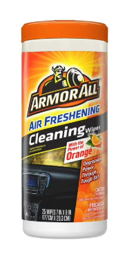 Your cars delicate surfaces are too important to trust to a household cleaner. Get that natural, just detailed look with Armor All Air Freshening Cleaning Wipes from the most trusted name in quality car care. Meticulously engineered for your cars special needs, they lift away dirt and debris, revealing your cars rich, natural beauty without harming delicate automotive surfaces. Keep a canister in your car for cleanup on the go. The Moisture Lock Lid is guaranteed to keep them fresh for at least a year. Trust Armor All Wipes to clean and protect a variety of interior surfaces. Theyre convenient, easy to use and disposable.