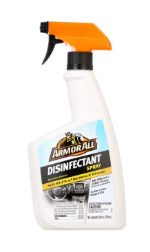 Armor All Disinfectant Spray - 24 OZ Bottle, Spray Disinfectant for Interior Automotive Surfaces Protect yourself and your car with disinfectants formulated to kill 99.9% of viruses and bacteria, and safe to use on hard, non-porous surfaces. See virus list on product. Cleans and disinfects in one step – for use in cars, trucks & RVs Kills 99.9% of SARS-CoV-2 which causes COVID-19 on hard, non-porous, non-food surfaces Kills 99.9% of viruses and bacteria – see virus list on product Cuts through grease and grime on hard, non-porous surfaces – see product labelling for details and specific surfaces Streak-Free fresh with a fresh scent