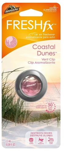 RESH fx car air fresheners is developed with advanced Odor Elimination Technology Made to destroy tough odors like food, pet, and smoke Vent Clip air freshener, easily attached to your car air vent Car air freshener Vent Clip in Coastal Dunes scent Long lasting up to 30 days Vent Clip - Small clips. Big results. Vent Clips are easy to use and last up to 30 days. Just attach one to your air vent and get ready to smell the transformation inside your car.
