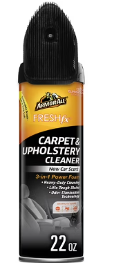 -Effective Cleaning: This 22-ounce automotive cleaner features a deep cleaning foaming formula for thorough results on carpets and upholstery. -Stain Removal: The fast-acting formula breaks down and removes tough stains such as mud, salt, grease, food, and coffee. -Odor Elimination: It leaves a pleasant New Car scent, effectively eliminating pet, food, and smoke odors from the car's interior. -Versatile Application: Ideal for holiday cleaning, winter home, and auto care messes, it lifts away dirt and debris to restore upholstery. -Safe Formulation: Meticulously balanced for automotive upholstery, this cleaner is safe to spray near delicate automotive surfaces. -Included Tool: A removable car cleaning brush is included to assist in scrubbing stubborn stains from carpets and upholstery.