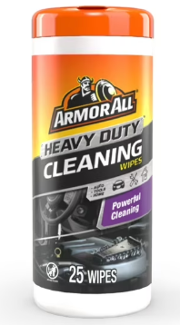Tough soils require a tough cleaning wipe. Armor All heavy duty cleaning wipes are a convenient way to clean up tough grime, oil and grease buildup under the hood and on tools, small engine parts, plastics, vinyl and metals. These specially designed textured wipes allow you to effectively loosen difficult soils and wipe surfaces clean. You can bring back the shine to your tools, engine parts, lawn and garden equipment, and more. Wipe surface clean with Armor All heavy duty cleaning wipes. Do not allow excess formula to dry on surface. Wipe any excess dry with a microfiber towel. Repeat if needed. Test in inconspicuous area before using. Not recommended for use on windows, glass or acrylic based plastics because it may cause streaking. Not intended for food-contact surfaces. Do not flush.