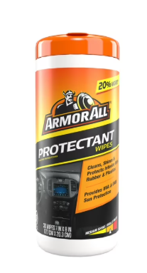 Armor All Car Interior Protectant Wipes, 30 Count Your vehicle’s interior is exposed to dirt, grime and harmful elements like UV rays and oxidation every day. Count on Armor All Car Interior Protectant Wipes to help keep your vehicle looking as good as the day you bought it. Designed for use on interior auto surfaces such as vinyl, rubber, plastic, trim and dashboards, Armor All Protectant Wipes clean, shine and protect against UVA and UVB sun damage. These interior car wipes easily lift away dirt and debris, enhance color and shine, and prevent fading and aging. Tested safe for automotive surfaces, our triple-action UV protectant preserves your car’s inherent beauty without drying out or otherwise damaging delicate materials. The non-greasy, streak-free formula leaves behind a Medium shine that rejuvenates dull surfaces. For a convenient and effective way to protect your car’s interior, use Armor All disposable car interior wipes. In addition to interior car protectant wipes, Armor All also makes protectant spray and other car care products. Give your vehicle the finish it deserves with Armor All, America's Most Trusted Auto Appearance Brand.