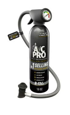 A/C Pro Ultra Synthetic R-134a Car AC Refrigerant Kit, 18 oz A/C Pro Professional Formula Ultra Synthetic R-134a Car Refrigerant Kit helps make recharging your car’s AC easy and accessible. This auto AC recharge kit features an additive formula that seals leaks in rubber hoses, gaskets and O-rings, and protects your AC system while providing 2x cooling boosters, versus the next leading brand of AC recharge kits. Each R-134a refrigerant kit helps eliminate acid and moisture buildup to protect and extend the AC system’s life. This AC leak sealer comes with a reusable, extra-long braided AC charging hose and AC gauge for easy, convenient and accurate recharging. To use, find the low-pressure port, turn on the car and AC, read the pressure, and charge the system. Feel empowered to take on DIY car care, and refill the chill yourself with A/C Pro. This item is ineligible for sale or shipping to WA/VT/CA. This item contains R-134a.