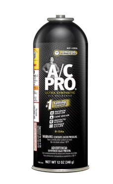 A/C Pro Professional Formula Refrigerant (12 ounces) (CA Compliant) A/C PRO Professional Formula Ultra Synthetic R-134a replaces lost refrigerant and oil in automotive air conditioning system. Special anti-wear additives extend system life and improve performance. System safe leak sealer stops most common air conditioning leaks in hoses, gaskets and O-rings. It cools interior faster with colder, drier air. This item contains R-134a.