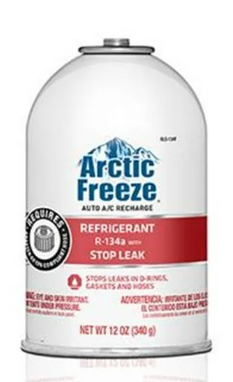 The Arctic Freeze R-134a with Stop Leak contains approximately 11 Ounce of R-134a and 1 Ounce of additives. The stop leak additive seals common leaks in rubber components of the A/C system. By sealing leaks, the special formula helps reduce future loss of refrigerant.