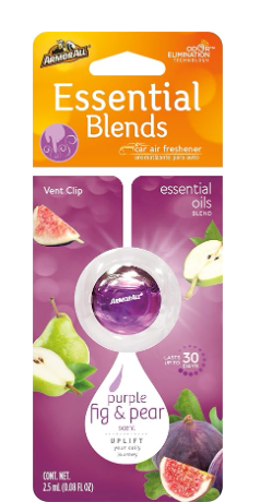 Armor All Essential Blends Car Air Freshener Vent Clip – Purple Fig & Pear is created with a special blend of essential oils designed to enhance your mood. Uplift your daily journey with Essential Blends Purple Fig & Pear scent – reminiscent of a sun-drenched Mediterranean holiday, notes of luscious purple fig mingle with fresh pear, warm amber and radiant citrus. Odors like food, pet and smoke are destroyed with Odor Elimination Technology and a fragrance that lasts up to 30 days.
