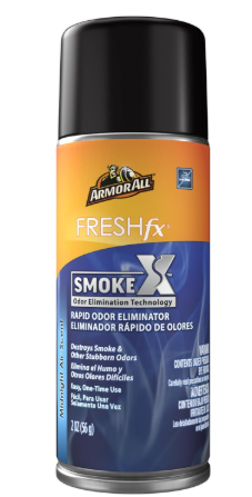 Armor All FRESH fix Smoke X Rapid Odor Eliminator in Midnight Air Scent features Smoke X patented Odor Elimination Technology that destroys smoke and other stubborn odors. Odors are destroyed leaving behind a refreshing Midnight Air fragrance that carries notes of lemon verbena, leather, patchouli and warm woods like a mystic breeze.