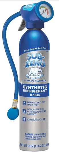 Sub-Zero R-134a Synthetic Auto A/C Recharge improves the air conditioner's cooling performance up to 18%. It prevents oxidation and sludge build-up, extends the life of the compressor and reduces engine drag for better gas mileage. It may be used in any auto air conditioner and is compatible with either PAG or POE lubricates. All-in-one solution - no additional tools required Replaces lost R-134a refrigerant and oil in automotive A/C system Formulated with COOL BOOST technology to provide up to 18% colder air System-safe leak sealer additive seals common A/C leaks in rubber hoses, gaskets and O-rings Eliminates moisture buildup and acid from A/C system to help extend A/C system life Reusable push-button dispenser with gauge and temperature dial indicator