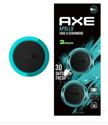 Simply clip the mini vent car air freshener onto your car’s vents to help you control the freshness of your ride wherever you are. Its sleek, circular design – which features a recyclable, hard-wearing ceramic core – is available in seven genuine AXE fragrances and is ideal for those looking for a discrete car air freshener that releases a fresh and elegant aroma. The fragrance core is the secret to this high performer. It’s able to absorb a high level of fragrance, and releases it evenly and slowly for up to 30 days* in your vehicles interior. The back case allows the air from the vents to pass through easily, releasing the fragrance in the cabin. The POM clip allows a snug fit to each vent. The mini car vent fresheners might be small, but they pack a real fragrance punch!Now, the best AXE fragrances have been transformed into an enticing range of scented car air fresheners to keep your ride clean and cool! Developed in different formats including scented discs, mini vents, and gel cans, there’s an AXE car air freshener that’ll boost your confidence no matter what state your car is in! All are available in six of the most iconic AXE fragrances. Securely sealed for 100% protected freshness, each AXE car air freshener is perfectly infused to ensure slower, long-lasting scent release, so you and your ride stay fresher for longer! Our sealed car air fresheners offer a 100% invigorating scent every time, guaranteeing your favorite fragrance lasts longer. You’re welcome! AXE mini car vent fresheners are ideal for those looking for a discrete car air freshener that releases a fresh and elegant aroma Simply clip the mini vent car air freshener onto your car’s vents to help you control the freshness of your ride POM clip allows a snug fit to each vent Sleek, circular design features a hard-wearing ceramic core and is recyclable Calcium Silicate core absorbs a high level of fragrance, and releases it evenly and slowly for up to 30 days* when used as directed Polypropylene back case allows the air from the vents to pass through easily, releasing the fragrance in the cabin Iconic Apollo scent has notes of sage and cedarwood