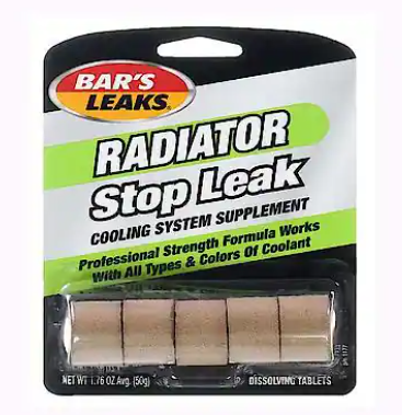 Bar's Leak Radiator Stop Leak Tablets inhibit the formation of rust and scale, neutralize pH imbalance, controls electrolysis, lubricates and seals internal, external and coolant-to-oil leaks. Same tablets as used by many OEM auto and truck manufactures around the world. Bar's Leak Radiator Stop Leak is designed to enhance the use of antifreeze or can also be used in water. When used in water alone, it is also recommended to use a cooling system anti-rust and water pump lube.