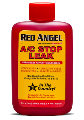 Red Angel Stop Leak repairs common leak points in automotive air conditioning systems. Activated at the leak point only, Red Angel will not crystallize with existing oxygen or moisture in the system and will seal your air conditioner leak. After AC leak repair is achieved, Red Angel will continue to lubricate and condition working parts. Use Red Angel for an AC leak stop, for preventative maintenance, or to warranty hard part replacement against future leak points.