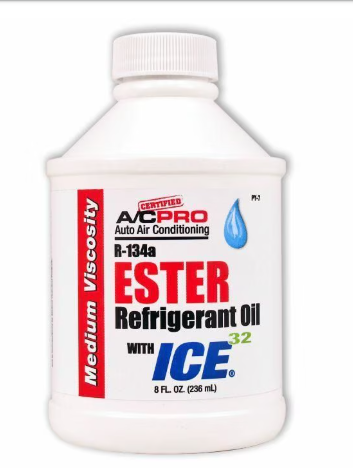 8 OZ ESTER WITH ICE 32 Medium viscosity ester oil for all R-134a systems; ISO 100 viscosity, SUS at 100° ICE32 Lubricant Enhancer: advanced chemistry to help extend compressor life and improve cooling capacity Other Customers Also Viewed