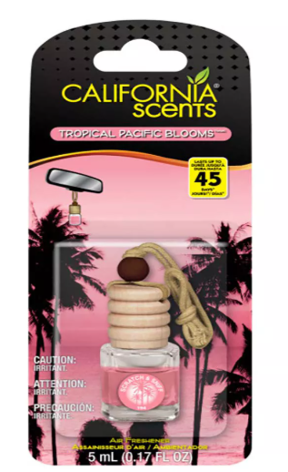 Bring the tantalizing aromas of the west coast to your car with bold fragrances from California Scents. Simply tie the Hanging Vial to your rear view mirror or other desired location away from other surfaces. Let it dangle, and start breathing easy, knowing every breath you inhale has the essence of California. Let it hang for up to 45 days*, then switch it out for another Hanging Vial. Your nostrils will be greeted by the sweet floral scents of hibiscus, raspberry, and zesty lemon mixed with the misty spray of the ocean itself. Works beyond just the car−use it to keep gym lockers and the house smelling fresh by slipping it into an air vent.
