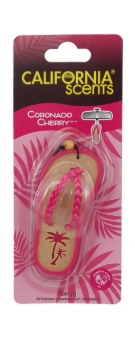 Add a juicy sweetness to your car with the California Scents Sandal-shaped air freshener in Coronado Cherry scent, perfect for eliminating odors and keeping your car smelling fresh and clean This hanging car air freshener is stylish and eco-friendly, made from biodegradable materials that are safe for the environment and your health. Get ready to turn heads with the Sandal-shaped air freshener, a unique and eye-catching design, perfect for any car lover who wants to add a touch of luxury to their car interior.