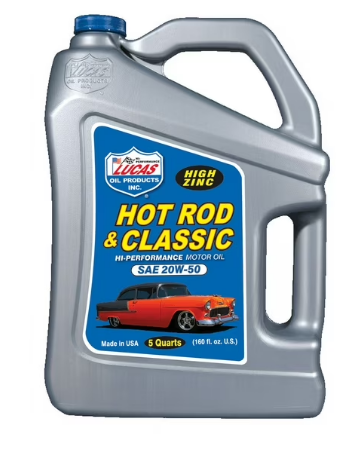 Lucas Hot Rod & Classic Car Motor Oil SAE 20W-50 is manufactured with the highest quality paraffinic base oils and is fortified with a unique additive package containing high levels of zinc, molybdenum and phosphorus, which provides a tougher, thicker additive film for maximum protection even under the most severe conditions. It lowers oil temperatures, extends oil life and minimizes metal fatigue. It improves the film strength between the cylinder wall and piston rings and slows oil burning and improves pressure in worn engines. It has good cold temperature properties and stands up to high operating temperatures. It is compatible with methanol and all racing fuels, as well as with synthetic and non-synthetic oils. Lucas Hot Rod & Classic Car Motor Oil SAE 20W-50 is for muscle, showroom, classic and trophy cars without catalytic converters. It can be used in racing applications. Not recommended for passenger car use. Lucas Oil 10684 Hot Rod & Classic Car HP Motor Oil SAE 20W-50 5 Quarts