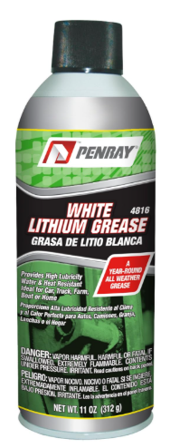 Penray 4816 White Lithium Grease - 11-Ounce Aerosol Can offers superior corrosion and friction protection. This high lubricity grease works equally well in high and low temperatures and in all types of weather. It is ideal for automotive, truck, marine, farm equipment and household accessories. The Penray brand of products is engineered for use by professional automotive maintenance and repair technicians. Our superior product line helps to improve gas mileage, extend engine life and improve overall performance with the consumer in mind. Technicians rely on Penray Professional Service Kits for fuel injection cleaning, power steering flush, transmission flush and other maintenance services. Penray’s broad line covers fuel additives, oil additives, maintenance products, service items and winter products. For over 65 years Penray has manufactured quality chemical products with innovative chemistry focused on automotive, heavy duty and marine applications. Each of our products is specifically engineered to help keep your vehicle performing at it’s very best.