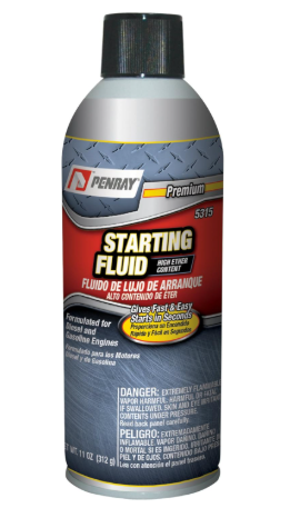 Penray 5315 High Ether Content Starting Fluid - 11-Ounce Aerosol Cangives fast and easy starts in seconds. It is designed for use in gasoline or diesel engines. It is ideal for cars, trucks, tractors, generators, buses, marine engines, outboards and power mowers. It saves batteries, starters, and engines from wear. It provides upper cylinder lubrication. The Penray brand of products is engineered for use by professional automotive maintenance and repair technicians. Our superior product line helps to improve gas mileage, extend engine life and improve overall performance with the consumer in mind. Technicians rely on Penray Professional Service Kits for fuel injection cleaning, power steering flush, transmission flush and other maintenance services. Penray’s broad line covers fuel additives, oil additives, maintenance products, service items and winter products. For over 65 years Penray has manufactured quality chemical products with innovative chemistry focused on automotive, heavy duty and marine applications. Each of our products is specifically engineered to help keep your vehicle performing at it’s very best.