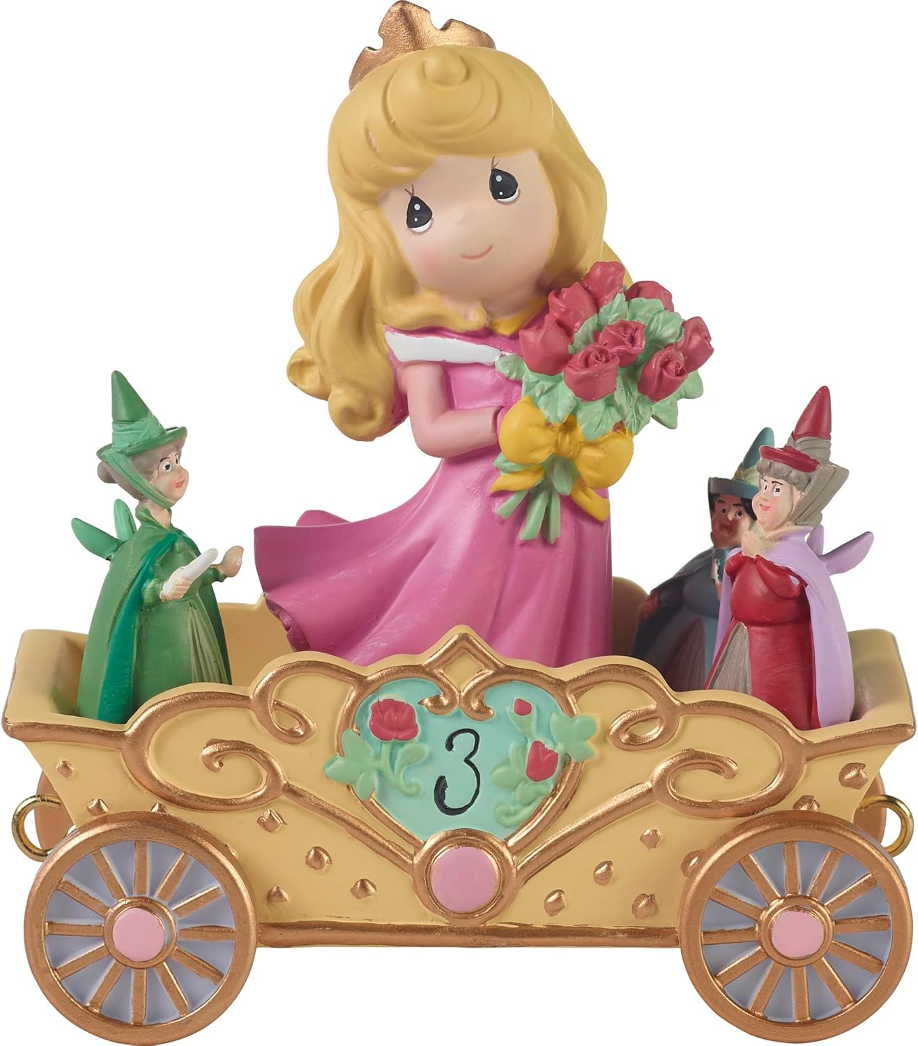 There's no time for sleep when there is a 3rd birthday to celebrate! Dressed as Princess Aurora with the Good Fairies beside her, this Sleeping Beauty is the fourth piece in the Disney Birthday Parade series. Meticulously hand painted and crafted of cold-cast resin, it is the perfect 3rd birthday gift for any princess turning three. Approximately 4.25 inches high.