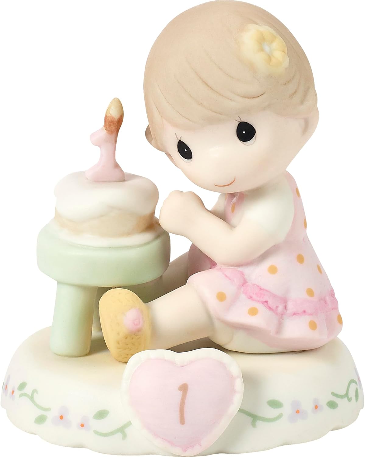 Before you know it, Baby Girl is turning one! Celebrate her first year of milestones and memories with this hand-painted porcelain figurine. Seated at a table just for her, this little one is ready to celebrate her first birthday with a piece of cake. Look for other pieces in the series, available in both blonde and brunette hair styles, to celebrate all her birthdays through age 16. Bisque porcelain figurine is expertly hand painted. Approximately 3.25 inches high.