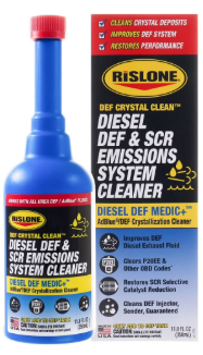 RISLONE® DEF CRYSTAL CLEAN™ Diesel DEF & SCR Emissions System Cleaner is a propriety blend of DEF (Diesel Exhaust Fluid) / AdBlue® compatible cleaning agents and surfactant detergents specifically designed to be safe to use and work on SCR (Selective Catalyst Reduction) systems. The new DEF Crystal Clean gives a cleaning effect on the entire SCR system by working to dissolve the white crystal deposits that form in the tank, pump, heater, sender, lines, injector, decomposition tube / reactor and mixer. These deposits can interfere with the normal operation of the SCR emissions system and engine, increasing fuel consumption and reducing engine power. This reduced power can lead to operating in limp mode where the vehicle will drive slowly, or become undrivable. This process restores function and with regular use maintains efficiency of the SCR. 11.8 oz. Item 4784