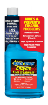 Star Tron Enzyme Fuel Treatment is a multifunctional fuel additive which uses a unique enzyme technology that allows all engines to start easily and run smoothly, even when using ethanol-blended fuel or after sitting idle for months. Star Tron allows fuel to burn more completely, which results in maximum performance, fuel efficiency and reliable operation. Star Tron will stabilize fuel for up to two years, preventing the formation of gums and other solids that clog carburetors and fuel injectors. Star Tron helps prevent phase separation by dispersing water throughout fuel as submicron-sized droplets that can be safely eliminated while the engine operates. Star Tron Small Engine formula is ideal for use in all gas engines including; boats, cars, trucks, motorcycles, small equipment as well as engines that use pre-mix fuel.